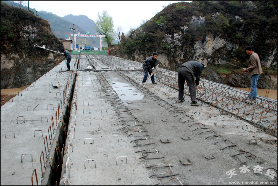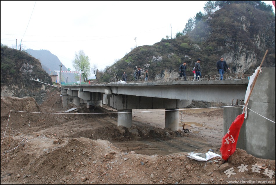 該大橋是秦州區(qū)娘娘壩災(zāi)后重建工程,大橋設(shè)計(jì)長度74米,寬度8.5米。目前橋面鋪設(shè)工程已完成,預(yù)計(jì)4月底建成,5月15日正式通車。該大橋的建成,將極大地解決柳林、李子園、望天等8個(gè)村8000多人出行困難。