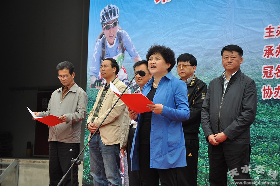 (天水市體育局副局長李愛平、秦州區(qū)副區(qū)長曹亞玲、秦州區(qū)林業(yè)局局長張雪亮、天水秦州農(nóng)村合作銀行工會主席吳勝利鳴槍發(fā)令)