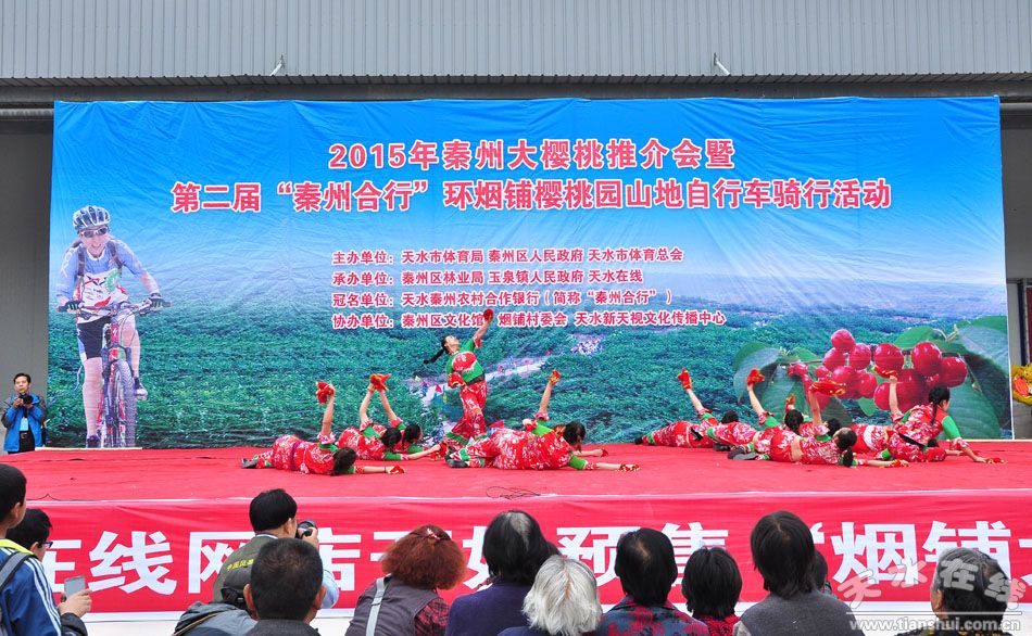 (騎行活動開始前的文藝演出 舞蹈:扭著秧歌摘櫻桃 演出: 秦州區(qū)文化館)