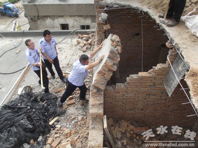 近日,秦州區(qū)執(zhí)法局機(jī)動(dòng)一中隊(duì)執(zhí)法人員在執(zhí)法巡查中發(fā)現(xiàn),皇城路橋頭加油站西側(cè)正在建設(shè)三層的磚混結(jié)構(gòu)房屋,經(jīng)過現(xiàn)場調(diào)查,了解該房屋是姚某家在自家原有二層基礎(chǔ)上加蓋第三層,姚某建設(shè)該房屋并沒有到相關(guān)單位辦理審批手續(xù)。執(zhí)法人員立即對該行為予以制止,并下發(fā)了《責(zé)令限期改正通知書》,責(zé)令當(dāng)事人限期拆除。