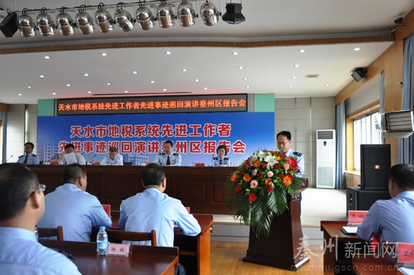 (秦州地稅局 王利勇)“無(wú)論在哪個(gè)崗位上,始終懷著一顆感恩的心,時(shí)刻牢記所擔(dān)負(fù)的責(zé)任,刻苦鉆研,嚴(yán)于律己,時(shí)刻警醒自己要對(duì)黨忠誠(chéng)、干凈做人、勇于擔(dān)當(dāng)!边@是一名秦州地稅人向社會(huì)弘揚(yáng)正能量道出的心聲。6月2日,天水市地稅局黨組成員、副局長(zhǎng),系統(tǒng)工會(huì)主席張學(xué)成帶領(lǐng)天水市地稅系統(tǒng)先進(jìn)工作者事跡宣講團(tuán)在秦州地稅巡回宣講,秦州區(qū)委常委、組織部長(zhǎng)王永剛應(yīng)邀出席會(huì)議,區(qū)委常委、副區(qū)長(zhǎng)張仲牛出席會(huì)議并作了重要講話,會(huì)議由市局黨群辦負(fù)責(zé)人常鈺鋒主持,區(qū)局黨組成員、副局長(zhǎng)柯莉介紹宣講成員情況,秦州區(qū)地稅局黨組書記、局長(zhǎng)呂見(jiàn)平致歡迎詞,宣講團(tuán)成員及秦州地稅全體職工共計(jì)153人參加會(huì)議。