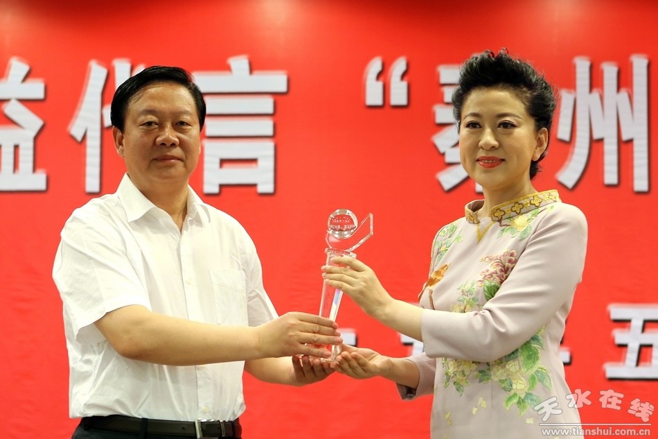 (中央電視臺《中華情》總導(dǎo)演郭霽紅向秦州區(qū)人民政府頒發(fā)公益代言授權(quán)書)