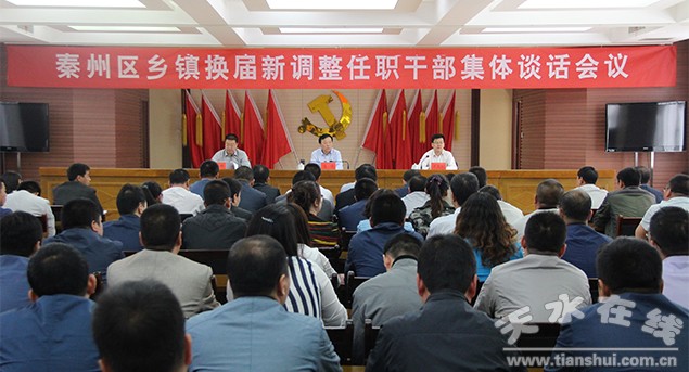(秦州區(qū)外宣辦)5月10日,秦州區(qū)召開鄉(xiāng)鎮(zhèn)換屆新調(diào)整任職干部集體談話會議,市委常委、區(qū)委書記雷鳴出席會議并強調(diào):要繪就思路清、措施實的好藍圖,選出忠誠干凈擔當?shù)暮酶刹,配出結(jié)構(gòu)優(yōu)功能強的好班子,換出心齊氣順勁足的好面貌,為順利完成“十三五”規(guī)劃,打贏脫貧攻堅戰(zhàn),為按期實現(xiàn)全面建成小康社會奮斗目標提供堅強的保證。 區(qū)委常委、紀委書記毛更生出席會議,區(qū)委常委、組織部長王永剛主持會議。