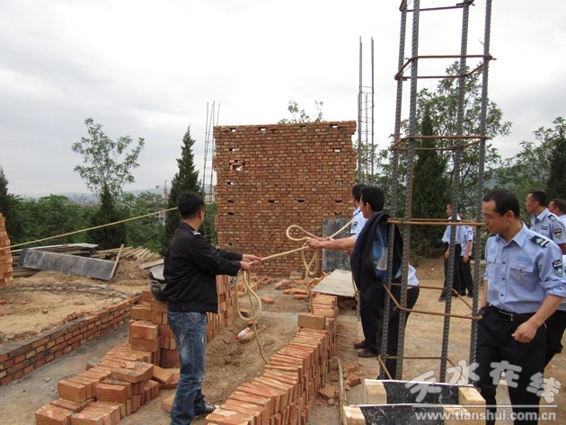 7月6日,執(zhí)法局聯(lián)合國(guó)土資源局秦州分局,出動(dòng)了執(zhí)法人員30名,執(zhí)法車2輛,挖機(jī)1輛,對(duì)縣家路村2處違法建筑進(jìn)行拆除,面積約為150平方米,起到了有效的震懾作用。