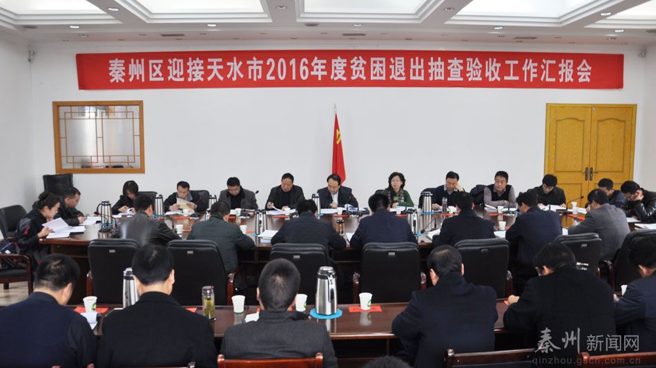當(dāng)天上午,全市2016年度貧困退出驗收工作秦州匯報會召開。匯報會上,市脫貧攻堅領(lǐng)導(dǎo)小組第四抽查驗收組組長、市人大常委會副主任安志宏作了講話。區(qū)委副書記、區(qū)長劉文璽主持會議并做了表態(tài)發(fā)言。區(qū)委副書記李繼明對秦州區(qū)2016年度貧困退出工作完成情況進(jìn)行了匯報。