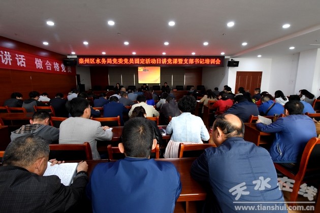 5月5日上午,秦州區(qū)水務(wù)局黨委在農(nóng)業(yè)大廈18樓會議室召開 “黨員固定活動日”講黨課暨支部書記培訓(xùn)會。會議由局黨委副書記王小鵬主持,局班子成員、各支部書記和全局黨員干部共約 100余人參加。