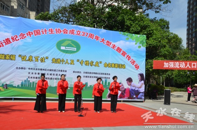 5月25日,由大城街道主辦、大城街道光明巷社區(qū)協(xié)辦的“秦州區(qū)大城街道慶祝全國計(jì)劃生育協(xié)會(huì)成立37周年紀(jì)念暨隴家!】蛋偌选冗M(jìn)個(gè)人和‘幸福家庭’命名表彰大會(huì)”在天水市人民公園隆重開幕。本次文藝演出暨表彰大會(huì)得到了轄區(qū)各單位以及轄區(qū)各級(jí)計(jì)生協(xié)會(huì)的高度重視,得到了轄區(qū)居民群眾的積極支持和廣泛參與,共計(jì)有轄區(qū)單位代表、計(jì)生協(xié)會(huì)會(huì)員以及街道社區(qū)干部、居民群眾500余人參加。
