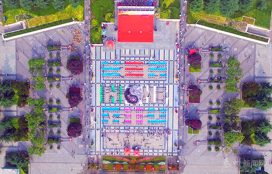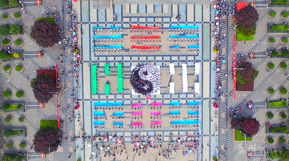 活動(dòng)現(xiàn)場,臺(tái)上的節(jié)目精彩紛呈,臺(tái)下的觀眾揮舞手中的各色彩帶,從空中俯瞰,正好組成太極八卦的造型,完美展現(xiàn)了先皇伏羲的豐功偉績。