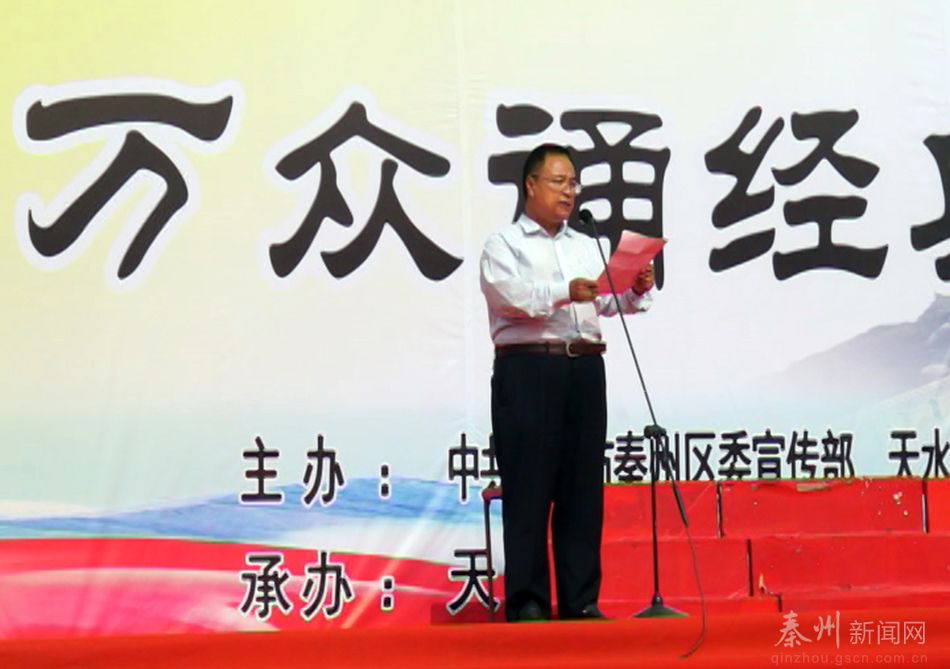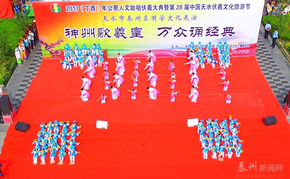 秦州區(qū)文化廣播影視局局長秦毅敏在致辭時(shí)說,此次活動(dòng)是全區(qū)第28屆伏羲文化旅游節(jié)文化活動(dòng)重要內(nèi)容之一,是傳承和弘揚(yáng)中華優(yōu)秀傳統(tǒng)文化的具體表現(xiàn),是培育踐行社會(huì)主義核心價(jià)值觀的生動(dòng)實(shí)踐,是促進(jìn)文化惠民、改善文化民生的具體行動(dòng)。通過“神州歌羲皇萬眾誦經(jīng)典”國學(xué)文化展演活動(dòng),傳播國學(xué)精神,弘揚(yáng)伏羲文化,感受中華傳統(tǒng)文化的魅力,增強(qiáng)文化創(chuàng)新發(fā)展自信,把秦州故事傳唱的更加生動(dòng)感人,更加悠遠(yuǎn)響亮。