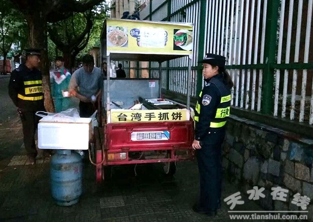 對(duì)校園周邊出現(xiàn)的輔導(dǎo)班“扎堆”宣傳、文具店占道經(jīng)營(yíng)、食品攤流動(dòng)叫賣(mài),以及引發(fā)的傳單擾民、污染環(huán)境、交通擁堵等問(wèn)題,實(shí)行錯(cuò)時(shí)和延時(shí)管理,規(guī)范門(mén)店經(jīng)營(yíng),取締流動(dòng)攤點(diǎn),制止散發(fā)廣告。收繳傳單3300多份以及條幅、招牌、遮陽(yáng)傘10余件,清理違規(guī)宣傳、店外經(jīng)營(yíng)、流動(dòng)攤點(diǎn)80余處,保證了全城區(qū)校園周邊環(huán)境整潔、秩序良好。