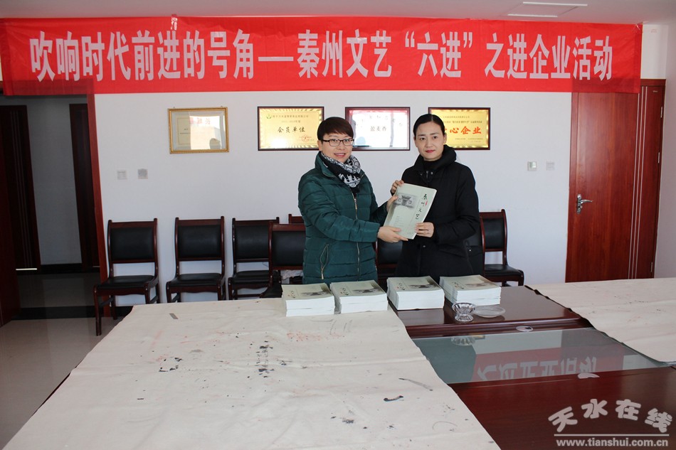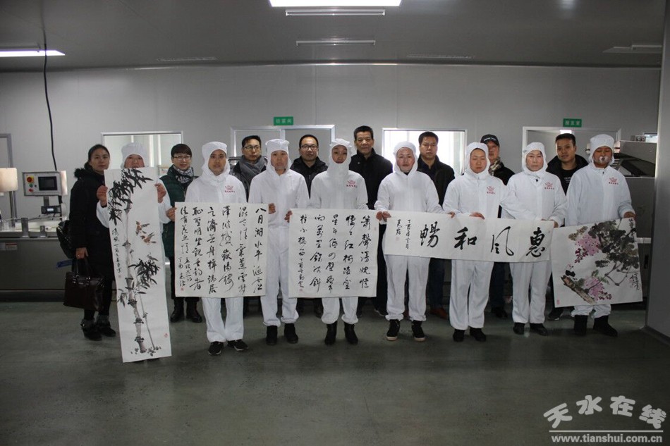 (秦州區(qū)文聯(lián))1月10日,秦州區(qū)文聯(lián)組織由文聯(lián)機(jī)關(guān)干部、部分區(qū)作協(xié)、書協(xié)、美協(xié)會(huì)員組成的宣傳十九大精神文藝小分隊(duì),在天水盈麥香食品有限責(zé)任公司開展了“吹響時(shí)代前進(jìn)的號(hào)角——秦州文藝‘六進(jìn)’之‘進(jìn)企業(yè)’”活動(dòng),區(qū)工信局及市食品檢驗(yàn)檢測(cè)中心綜合科有關(guān)負(fù)責(zé)同志應(yīng)邀參加活動(dòng)。
