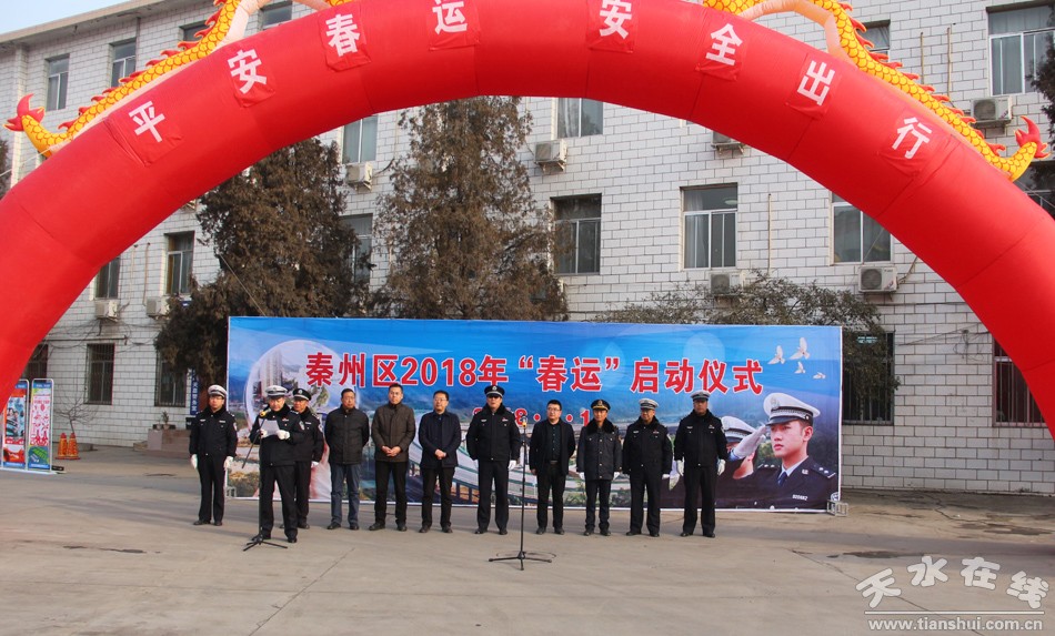 啟動儀式上,秦州公安分局、天嘉集團負責(zé)人分別就春運工作安排作了表態(tài)發(fā)言。區(qū)委常委、常務(wù)副區(qū)長王永剛宣布“秦州區(qū)2018年春運工作啟動”。