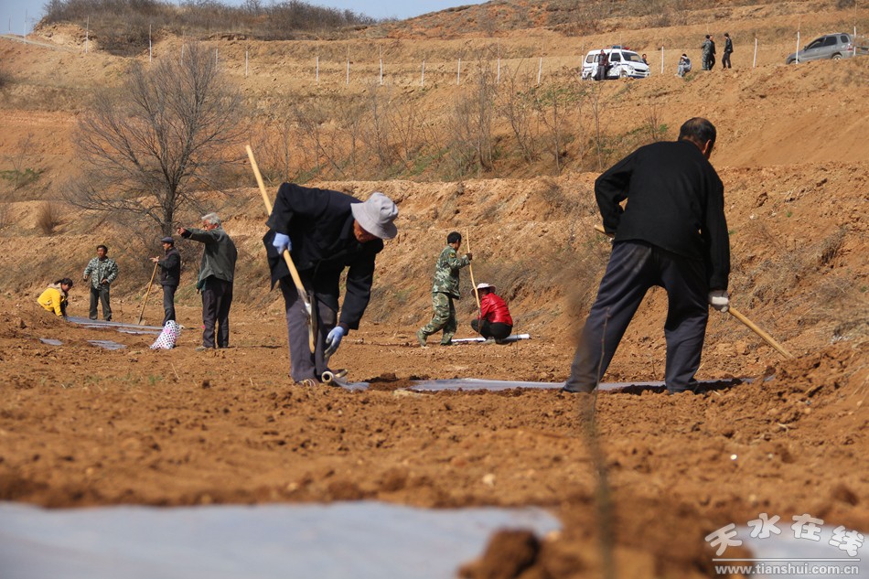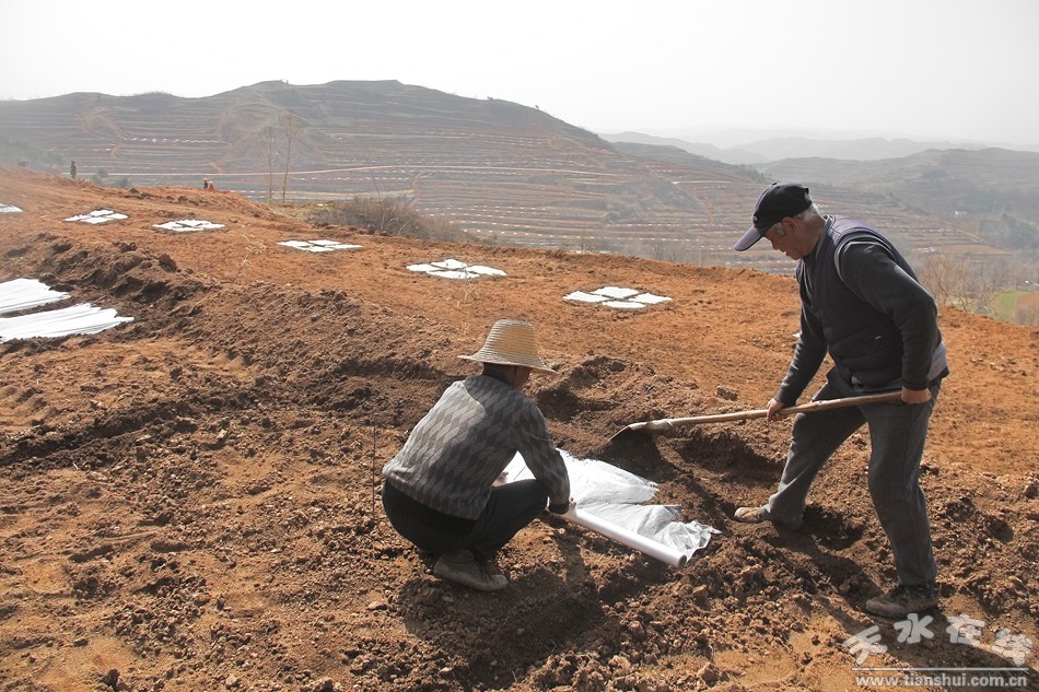 秦州區(qū)外宣辦3月20日訊(劉可 趙鋒)19日,記者在齊壽鎮(zhèn)張趙片區(qū)的退耕還林綠化區(qū)域看到,造林人員正在栽種用于地埂鎖邊的松樹,林業(yè)技術(shù)人員同時(shí)為地塊內(nèi)構(gòu)樹栽植進(jìn)行打點(diǎn)。而在產(chǎn)業(yè)優(yōu)化建園區(qū)域,鎮(zhèn)村干部正在與村民一起搶抓時(shí)間,完成最后的挖坑、放苗、覆膜工作。