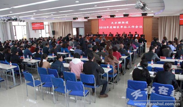 2018年3月30日下午,天水郡街道辦事處在天水市第三人民醫(yī)院十二樓多功能會議室召開2018年度轄區(qū)工作會暨表彰大會。參加會議的有街道黨工委班子成員、街道社區(qū)全體干部職工、轄區(qū)單位負責人以及居民代表共計180余人,會議由街道黨工委書記成軍同志主持。