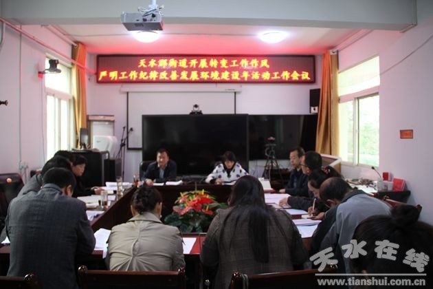 為進(jìn)一步推進(jìn)“轉(zhuǎn)變工作作風(fēng)嚴(yán)明工作紀(jì)律改善發(fā)展環(huán)境建設(shè)年”活動(dòng)深入開展,5月9日上午,天水郡街道召開轉(zhuǎn)變工作作風(fēng)嚴(yán)明工作紀(jì)律改善發(fā)展環(huán)境建設(shè)年活動(dòng)工作會(huì),街道班子成員,機(jī)關(guān)、社區(qū)全體黨員干部80余人參加此次會(huì)議,會(huì)議由街道黨工委副書記晏紅同志主持。