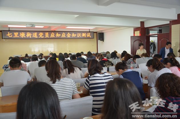 為檢驗街道全體黨員干部“兩學一做”學習教育及轉(zhuǎn)變工作作風建設年活動學習成果,6月6日下午,七里墩街道組織開展了黨員干部應知應會知識測試。街道全體黨員干部、入黨積極分子共計110余人參加了測試,街道黨工委書記胡莉文進行監(jiān)考。