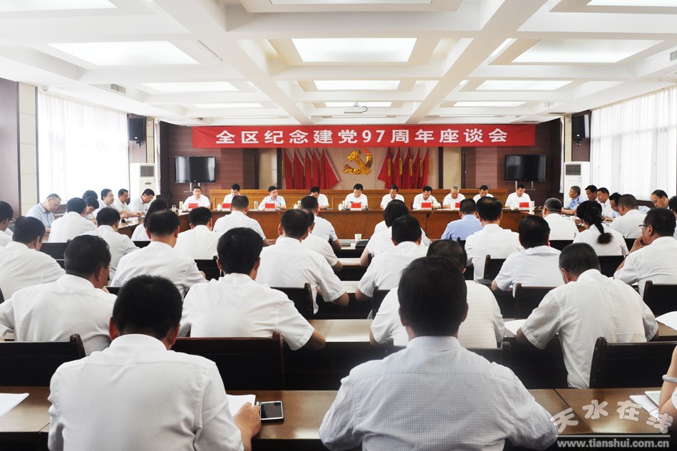 舉行紀(jì)念座談會,回顧歷史,展望未來。 秦州區(qū)在黨的生日來臨之際,積極組織區(qū)四大組織領(lǐng)導(dǎo)和全區(qū)各領(lǐng)域各戰(zhàn)線黨員代表、先進(jìn)基層黨組織代表共80余人舉行了“秦州區(qū)紀(jì)念建黨97周年座談會”。會上,來自不同戰(zhàn)線不同領(lǐng)域的8名黨員代表作了交流發(fā)言,市委常委、區(qū)委書記雷鳴同志回顧了黨的光輝歷史和全區(qū)發(fā)展歷程并作了重要講話,就加強黨的政治建設(shè)、思想建設(shè)、基層組織建設(shè)和作風(fēng)建設(shè)等提出了具有針對性和指導(dǎo)性的意見。
