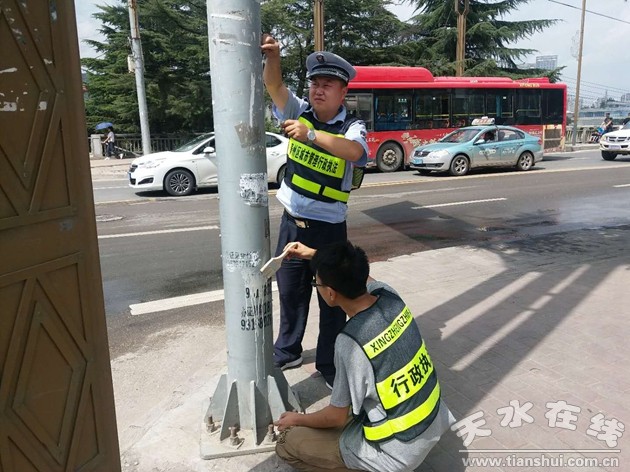 在專(zhuān)項(xiàng)行動(dòng)中,秦州區(qū)執(zhí)法局結(jié)合目前治理現(xiàn)狀,提出了“全覆蓋、全天候、無(wú)縫隙”的專(zhuān)項(xiàng)整治方案,見(jiàn)貼就鏟、洗,見(jiàn)亂刻畫(huà)就依底色涂蓋粉飾,并對(duì)全區(qū)16處橋體亂噴涂、亂張貼的清理工作進(jìn)行了責(zé)任劃分,做到分工明確、責(zé)任到位。各中隊(duì)在全方位清理轄區(qū)主次干道、建筑立面“牛皮癬”的同時(shí),安排執(zhí)法人員走訪店家,根據(jù)“門(mén)前三包”責(zé)任書(shū),督促沿街商店對(duì)玻璃門(mén)、墻壁上隨意張貼的廣告進(jìn)行清理,力求達(dá)到宣傳與管理并行的效果。整治中,凡是對(duì)巡查過(guò)程中發(fā)現(xiàn)的“牛皮癬”,一律組織人員及時(shí)清理;凡是“牛皮癬”內(nèi)容違法的,一律移交公安備案處理;凡是“牛皮癬”信息涉及企業(yè)法人的,一律收集證據(jù),按照最高限予以處罰;凡是發(fā)現(xiàn)現(xiàn)場(chǎng)進(jìn)行亂噴涂、亂張貼等違法行為者,一律進(jìn)行拍照取證,制作現(xiàn)場(chǎng)勘查筆錄,立案查處。同時(shí),區(qū)執(zhí)法局針對(duì)亂張貼、亂噴涂行為多發(fā)生在夜間、監(jiān)管相對(duì)薄弱的實(shí)際情況,及時(shí)將執(zhí)法力量進(jìn)行了科學(xué)調(diào)配,加強(qiáng)夜間巡查力度,有效遏制了蔓延勢(shì)頭。截止目前,共清理清除“城市牛皮癬”2200余處,教育20余人次,立案處罰違法張貼案件21起,其中處罰企業(yè)2家,“牛皮癬”治理取得了良好成效。
