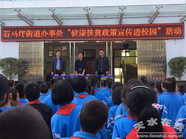 為深入推進(jìn)健康扶貧政策的宣傳和落實(shí),提高群眾對健康扶貧政策的知曉率,進(jìn)一步增強(qiáng)群眾對健康扶貧的滿意度,9月21日上午,秦州區(qū)石馬坪街道辦事處聯(lián)合秦州區(qū)城南小學(xué)開展“健康扶貧政策宣傳進(jìn)校園”宣講活動,為城南小學(xué)的廣大師生普及了健康扶貧和“七個(gè)知曉”知識。