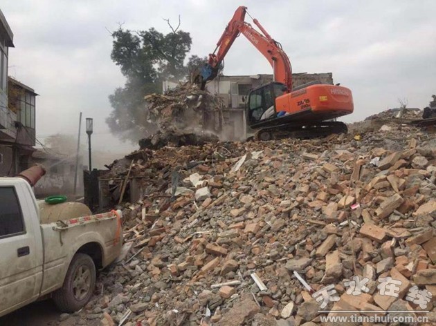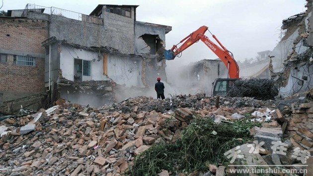 2018年11月1日,為了保障西關(guān)片區(qū)綜合利用與保護項目的順利實施,由秦州區(qū)政府組織,秦州區(qū)綜合執(zhí)法局、征遷局、西關(guān)街道辦事處以及消防衛(wèi)生等部門聯(lián)動,協(xié)同執(zhí)法,利用大型拆除機械,對阻礙項目實施的兩戶建筑物集中強制拆除。為了保證拆除工作的順利進行,區(qū)政府分管領(lǐng)導靠前指揮,各部門各司其職,主動作為,通力合作。當天共拆除項目區(qū)違章建筑1000余平方米。