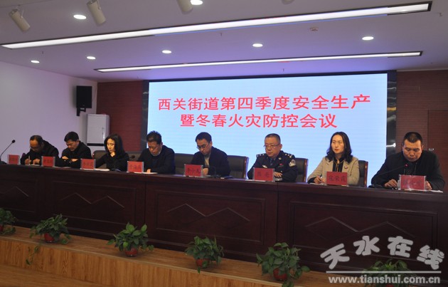 為全面貫徹落實(shí)秦州區(qū)安委會2018年第四次全體(擴(kuò)大)會議和冬春火災(zāi)防控會議精神,進(jìn)一步完善消防安全設(shè)施,增強(qiáng)轄區(qū)企業(yè)和居民的消防安全意識,有效控制和積極預(yù)防消防安全事故的發(fā)生。11月22日下午,西關(guān)街道召開了西關(guān)街道第四季度安全生產(chǎn)會議暨冬春火災(zāi)防控工作會議,街道全體領(lǐng)導(dǎo)班子、西關(guān)派出所、社區(qū)主任、轄區(qū)相關(guān)單位負(fù)責(zé)人及安監(jiān)專干、分管安全生產(chǎn)及消防工作人員、居民代表共計(jì)100余人參加了此次會議。
