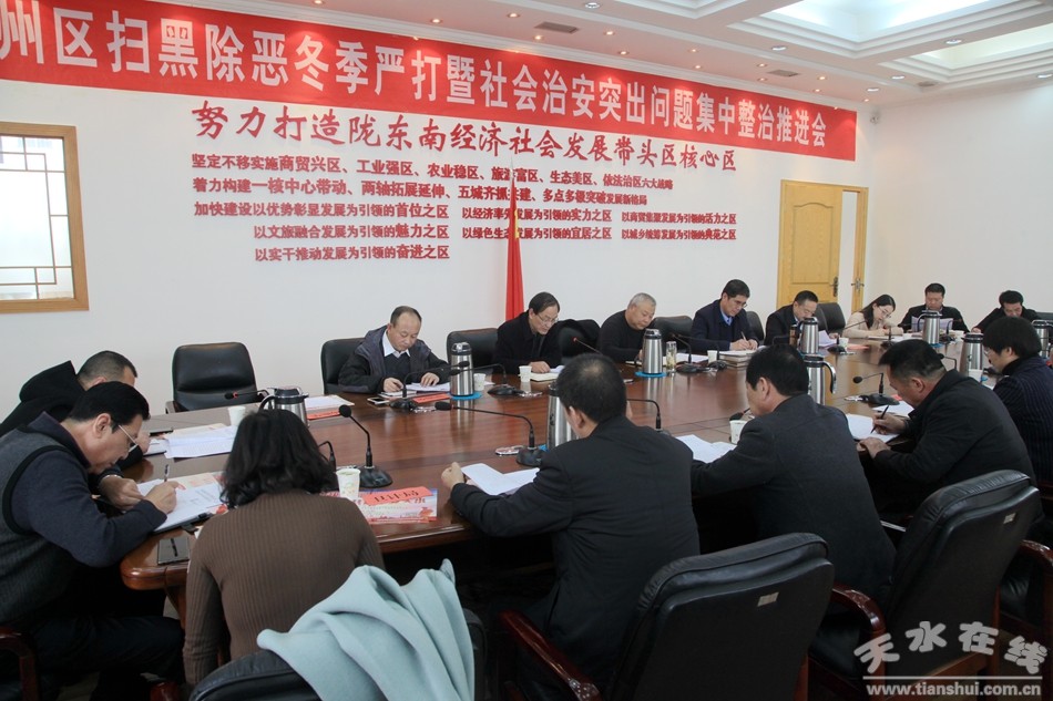 秦州區(qū)外宣辦11月28日訊 26日,秦州區(qū)召開全區(qū)掃黑除惡專項(xiàng)斗爭(zhēng)冬季嚴(yán)打暨社會(huì)治安突出問題集中整治專項(xiàng)行動(dòng)重點(diǎn)區(qū)域工作推進(jìn)會(huì)議。