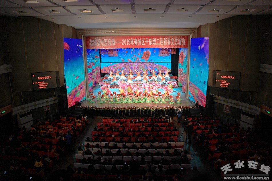 秦州區(qū)外宣辦1月31日訊(劉可)一元復(fù)始萬象新,壯闊秦州追春潮。今晚的秦州劇院內(nèi)燈光璀璨,歡聲笑語(yǔ)。由區(qū)委、區(qū)政府主辦,區(qū)委宣傳部、區(qū)文廣局承辦的“壯闊秦州追春潮——2019年秦州區(qū)干部職工文藝演出”在歡快的樂曲聲中拉開帷幕,精彩紛呈的文藝節(jié)目飽含著誠(chéng)摯的節(jié)日祝福。