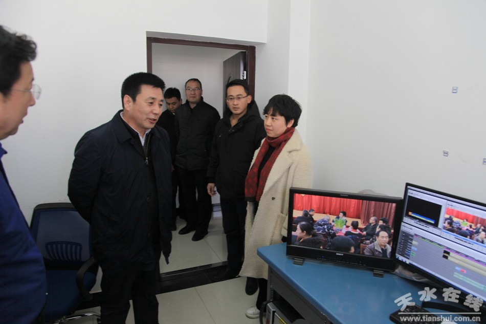 在區(qū)文廣局慰問調研時,劉文璽認真查看了區(qū)電視臺辦公環(huán)境和硬件設施,看望了正在辛勤工作的電視臺編播人員, 并和大家深入座談交流,詳細了解融媒體建設和春節(jié)期間安全播出情況,向一線新聞工作人員致以新春祝福。劉文璽強調,要深入學習貫徹習近平總書記在中央政治局第十二次集體學習時的重要講話精神,以區(qū)融媒體中心建設為契機,做大做強主流輿論,優(yōu)化節(jié)目組合,講好秦州故事,進一步提高正面宣傳質量和水平,推動媒體融合發(fā)展,全面提升主流媒體的傳播力和影響力。