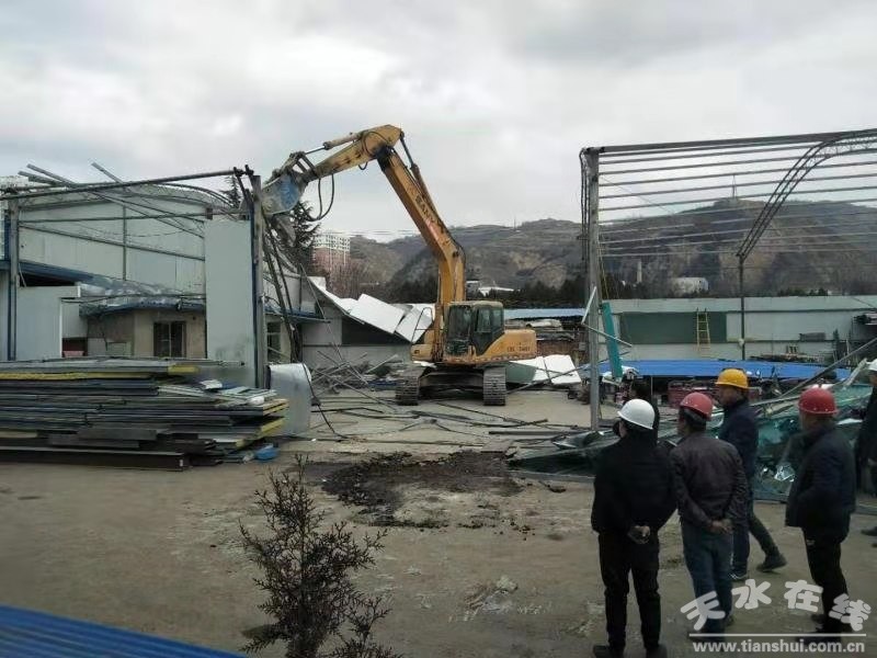 3月初,根據(jù)市委市政府大棚房問題整治工作安排,由秦州區(qū)政府組織,秦州區(qū)玉泉鎮(zhèn)、國土局、綜合執(zhí)法局等部門聯(lián)動,協(xié)同執(zhí)法,依法依規(guī)按程序,對玉泉鎮(zhèn)多嘉莊4宗占用耕地9.8畝,4500多平方米違法建筑立案拆除,恢復耕地。該4宗違建已由國土部門立案查處,人民法院裁定執(zhí)行,但部分當事人為出租謀利拒絕配合,在前期拆除2宗1300平方違建的基礎上,為確保大棚房整治見底到位,拆除工作依法有序,3月8日,區(qū)政府分管領導靠前指揮,各部門各司其職,主動作為,通力合作。對剩余2宗案件強制執(zhí)行拆除,當天共拆除占地面積約8畝的地上違法建筑2500余平方米。其余違法建筑拆除和耕地恢復工作正在進行中。