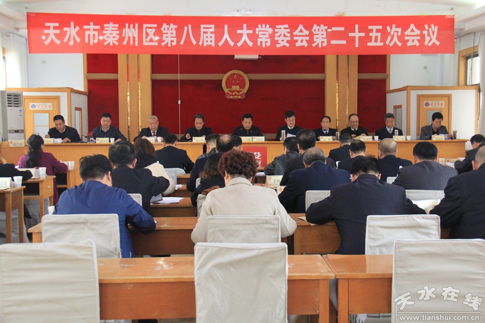 3月14日,秦州區(qū)人大常委會(huì)主任宋丕林主持召開(kāi)區(qū)八屆人大常委會(huì)第二十五次會(huì)議。區(qū)人大常委會(huì)副主任徐生明、縣毅、許亞軍、伏承祥、黨組成員杜林出席會(huì)議,區(qū)政協(xié)主席、區(qū)委常委、區(qū)紀(jì)委書(shū)記、監(jiān)委主任毛更生,副區(qū)長(zhǎng)馬小軍、區(qū)法院院長(zhǎng)趙小平、區(qū)檢察院檢察長(zhǎng)高保德及人大有關(guān)委辦、區(qū)直有關(guān)部門(mén)負(fù)責(zé)人、各街道人大工委主任、娘娘壩和中梁鎮(zhèn)人大主席列席會(huì)議。