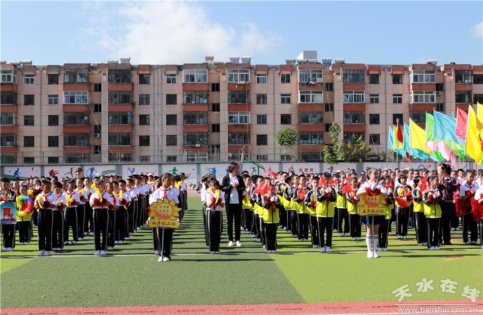 開幕式上,邀請甘肅工業(yè)職業(yè)技術(shù)學(xué)院國旗護(hù)衛(wèi)隊(duì)舉行了莊嚴(yán)的升旗儀式和倒功操表演。人民路小學(xué)進(jìn)行了千人花式籃球展演和年級(jí)組花式籃球比賽。在下午的競賽中,先后舉行了一分鐘拍球、五十米運(yùn)球跑、百發(fā)百中、二十米背對背夾球跑、定位投球、友誼賽等多項(xiàng)趣味活動(dòng)。