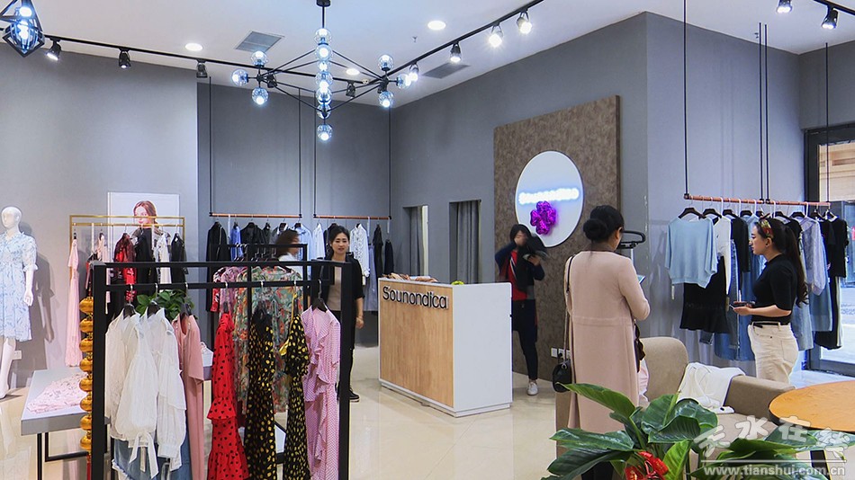 在上億廣場(chǎng)奧特萊斯品牌館的一家服裝店里,不少顧客正在挑試著自己喜歡的衣服,店員也是忙的不亦樂(lè)乎,整理服裝、為顧客介紹款式。