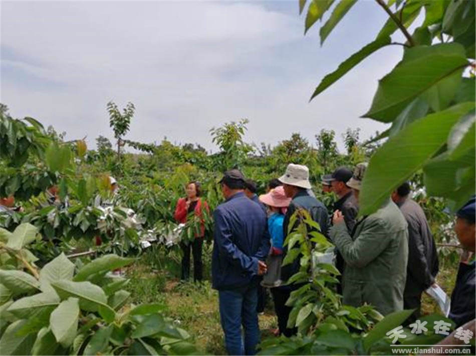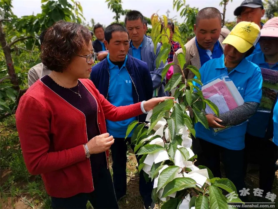 啟動(dòng)儀式后,甘肅省林果產(chǎn)業(yè)大櫻桃首席專家,天水市科協(xié)副主席,天水市果業(yè)協(xié)會(huì)副理事長(zhǎng)呼麗萍研究員進(jìn)行了《大櫻桃管理技術(shù)》的專題講座,圍繞果園提質(zhì)增效,結(jié)合秦州實(shí)際,從大櫻桃發(fā)展趨勢(shì),存在的問題、果園管理、病蟲害防治、果樹施肥等方面進(jìn)行全面講解,并開展了現(xiàn)場(chǎng)教學(xué),讓參加活動(dòng)的科技志愿者和聚鑫基地的果農(nóng)受益匪淺。