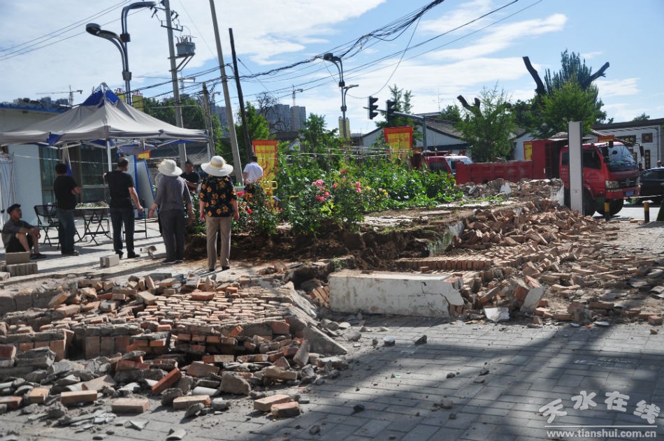 (當(dāng)天下午對影響交通安全的圍墻進(jìn)行拆除,圖為拆除前)