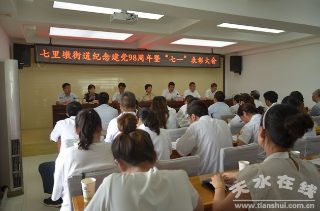 為回顧黨的光輝歷史,傳承黨的優(yōu)良傳統(tǒng),牢記黨的初心使命,6月25日下午,秦州區(qū)七里墩街道紀(jì)念中國(guó)共產(chǎn)黨成立98周年暨“七一”表彰大會(huì)隆重舉行。街道黨工委班子成員、全體黨員干部、轄區(qū)居民黨員代表等共計(jì)100余人參加大會(huì)。