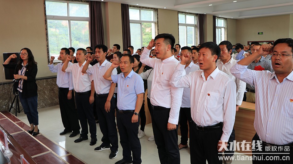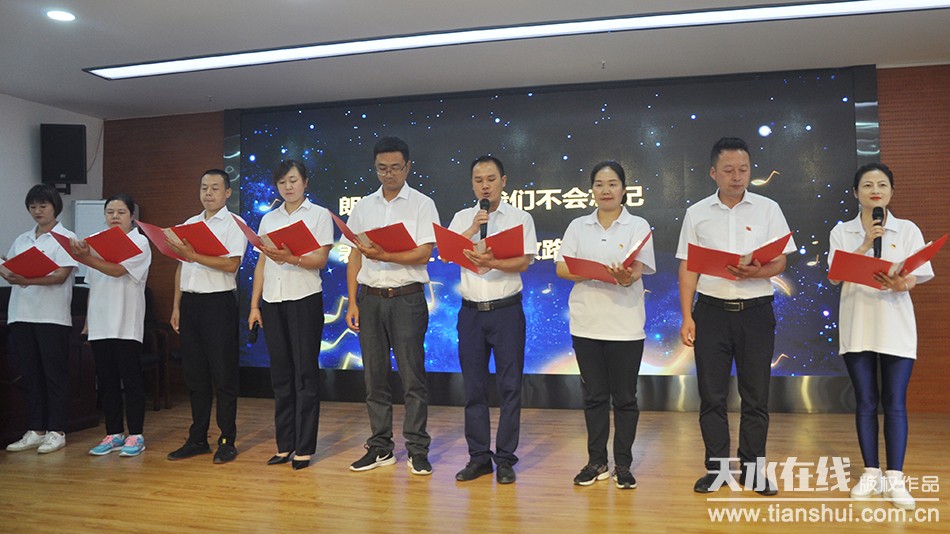 全體黨員干部唱國歌、國際歌,重溫入黨誓詞,進(jìn)一步統(tǒng)一思想、不忘初心、牢記使命、扎實(shí)工作。