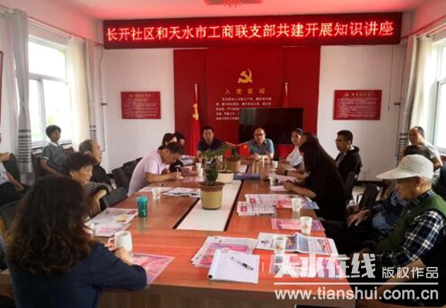 為了支部?jī)?yōu)勢(shì)互補(bǔ)、發(fā)揮好支部共建的平臺(tái)作用,助力基層黨建創(chuàng)新,近日,長(zhǎng)開社區(qū)離退休黨支部和天水市工商聯(lián)機(jī)關(guān)黨支部聯(lián)合開展了“結(jié)對(duì)共建”活動(dòng),舉辦了專題知識(shí)講座,提高黨員、居民健康養(yǎng)生知識(shí)水平和普及財(cái)富繼承的相關(guān)知識(shí)。