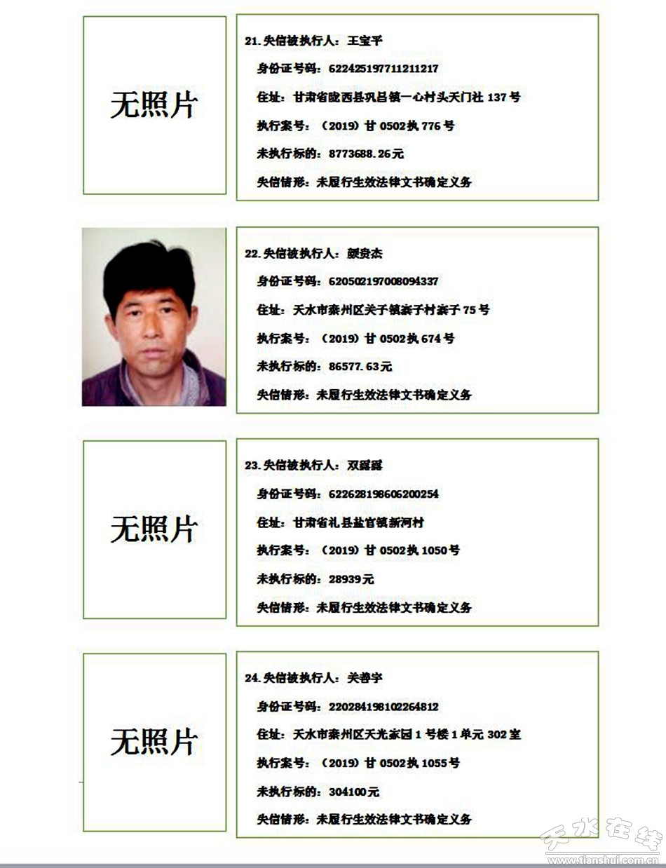 失信被執(zhí)行人曝光名單(自然人)2019年8月28日