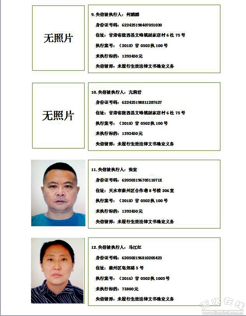 為進一步制裁規(guī)避執(zhí)行行為,保障勝訴當事人的合法權益,推進社會誠信體系建設,依照《中華人民共和國民事訴訟法》、《最高人民法院關于公布失信被執(zhí)行人名單信息的若干規(guī)定》等法律、司法解釋的有關規(guī)定,現(xiàn)對一批已進入執(zhí)行程序,且尚未全部履行義務的被執(zhí)行人進行媒體曝光,并敦促所有被執(zhí)行人自覺履行生效法律文書確定的義務,通告如下: