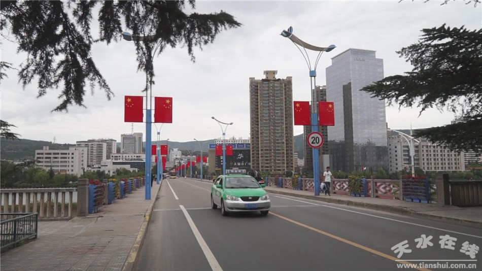 隨著國(guó)慶節(jié)的臨近,秦州區(qū)各條道路、橋梁以及機(jī)關(guān)、商鋪、小區(qū)都掛起了鮮艷的五星紅旗,為慶祝新中國(guó)成立70周年?duì)I造歡樂(lè)祥和的喜慶氛圍。在大眾路及南大橋,112個(gè)亞克力板透光燈箱式國(guó)旗正在懸掛中,與此同時(shí),秦州區(qū)市政設(shè)施管理處還在五里鋪大橋、贏池大橋等橋梁、橋體,中心廣場(chǎng)、市一中、師院、機(jī)電學(xué)院、建三小學(xué)等人行天橋上懸掛慶祝新中國(guó)成立70周年的宣傳標(biāo)語(yǔ)18條。在大眾路、中心廣場(chǎng)、解放路等路燈燈桿上懸掛國(guó)旗155套,喜迎新中國(guó)成立70周年。