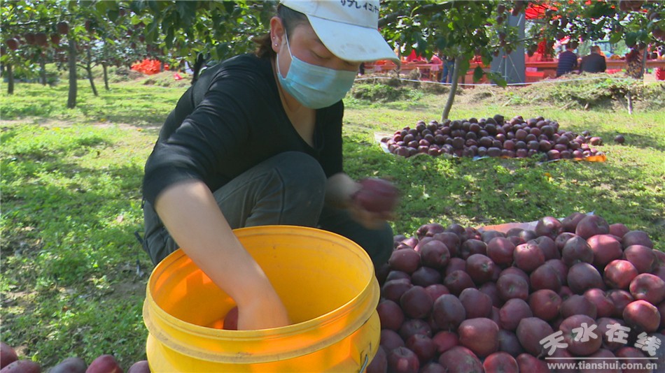 “今天正值我們中國農(nóng)民豐收節(jié),所有我們要擺一下豐收兩個字,說實在的我們今年中梁鎮(zhèn)的蘋果確實是大豐收了,所以豐收兩個字可以說是名副其實!敝辛烘(zhèn)黨委副書記邢利利說。