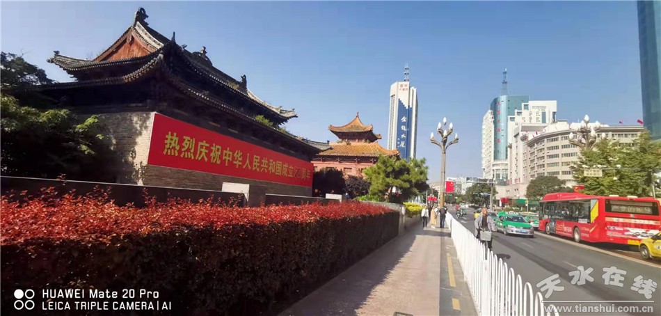 國慶期間,秦州區(qū)在龍城廣場及主干道沿線精心設(shè)置花壇、花柱等,共擺放100萬盆耐寒花卉;城區(qū)重要道路節(jié)點及重點區(qū)域,設(shè)立大型主題花壇景觀70處。同時對重點文化街區(qū)、古城墻遺址進行了亮化提升改造,以最佳的綠化美化亮化效果,慶祝中華人民共和國成立70周年。