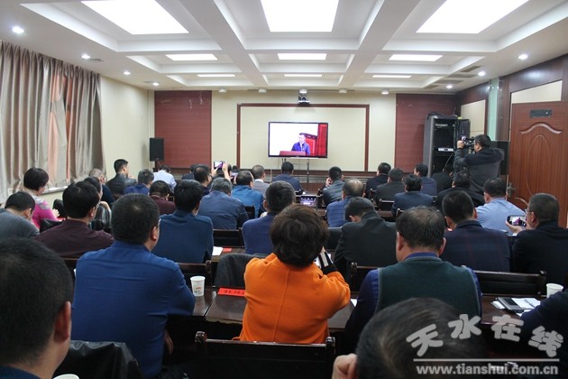 會(huì)議以電視電話(huà)會(huì)議形式召開(kāi),在張掖市設(shè)立主會(huì)場(chǎng)。秦州區(qū)區(qū)委副書(shū)記、區(qū)長(zhǎng)劉文璽在張掖市主會(huì)場(chǎng)參加會(huì)議,秦州區(qū)中梁鎮(zhèn)黨委書(shū)記楊海軍代表我區(qū)在大會(huì)上作了交流發(fā)言。我區(qū)在區(qū)政府四樓會(huì)議室設(shè)立分會(huì)場(chǎng),區(qū)政府副區(qū)長(zhǎng)羅增芳,區(qū)紀(jì)委監(jiān)委、區(qū)委宣傳部、區(qū)委辦、政府辦、區(qū)全域無(wú)垃圾治理聯(lián)席會(huì)議各成員單位、各鎮(zhèn)、街道辦事處、工業(yè)園區(qū)負(fù)責(zé)人共計(jì)50余人收聽(tīng)收看會(huì)議。