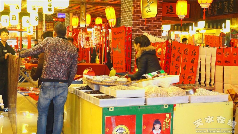 據(jù)了解,今年秦州區(qū)年貨市場設(shè)置在大眾南路萬家燈火民俗小吃街二樓,總面積1500平米,設(shè)有春聯(lián)、年畫、果蔬、食品、日雜5個區(qū),營業(yè)時間從臘月16日,一直持續(xù)到臘月三十日。