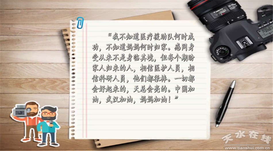 由于工作的特殊性,我們無法采訪到秦玉榮在武漢培訓(xùn)和赴一線工作的場面,妻子支援武漢后,張曉良繼續(xù)堅(jiān)守工作崗位,一家三口,兩個(gè)人奮戰(zhàn)疫情防控救治一線,逸帆呆家里自己照顧自己,張曉良只能在通過電話叮囑女兒照顧好自己。呆在家里的逸帆只能通過微信聊天,了解爸爸媽媽的工作,并相互鼓勵(lì),等待疫情過去父母平安歸來。