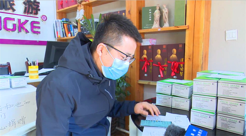 拿到朋友們捐來(lái)的愛(ài)心善款,張鳴飛利用自己近幾年開(kāi)旅游公司積攢的人脈,聯(lián)系口罩發(fā)貨商。在張鳴飛的不斷努力下,2月2號(hào),集資一萬(wàn)三千多元購(gòu)買(mǎi)的5000只醫(yī)用口罩到了天水。