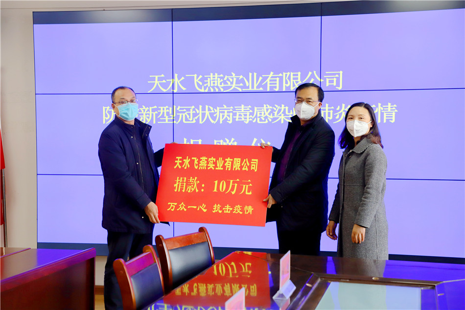 秦州區(qū)融媒體中心2月15日訊 在全區(qū)上下齊心協(xié)力開展新冠肺炎疫情防控的關(guān)鍵時刻,天水市飛燕實業(yè)有限公司為秦州區(qū)紅十字會捐款人民幣10萬元,以實際行動支持秦州區(qū)新冠肺炎疫情防控工作。