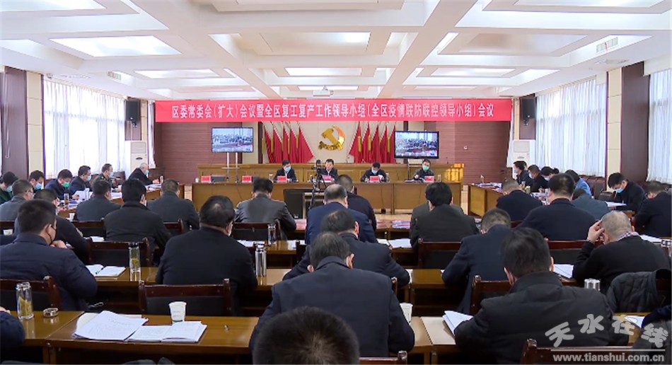 秦州區(qū)融媒體中心2月26日訊 (記者 魏朝輝 楊旭)2月25日,市委常委、秦州區(qū)委書記雷鳴主持召開區(qū)委常委會(擴大)會議暨復(fù)工復(fù)產(chǎn)工作領(lǐng)導(dǎo)小組(新冠肺炎疫情聯(lián)防聯(lián)控領(lǐng)導(dǎo)小組)會議。雷鳴強調(diào),要堅決貫徹落實習(xí)近平總書記重要講話精神,統(tǒng)籌推進(jìn)疫情防控和經(jīng)濟社會發(fā)展工作,以疫情防控保障復(fù)工復(fù)產(chǎn),以復(fù)工復(fù)產(chǎn)檢驗疫情防控成效,在推動經(jīng)濟社會發(fā)展,決勝全面小康、決戰(zhàn)脫貧攻堅大考中交出合格答卷。秦州區(qū)人大常委會主任宋丕林,區(qū)政協(xié)主席毛更生出席會議。