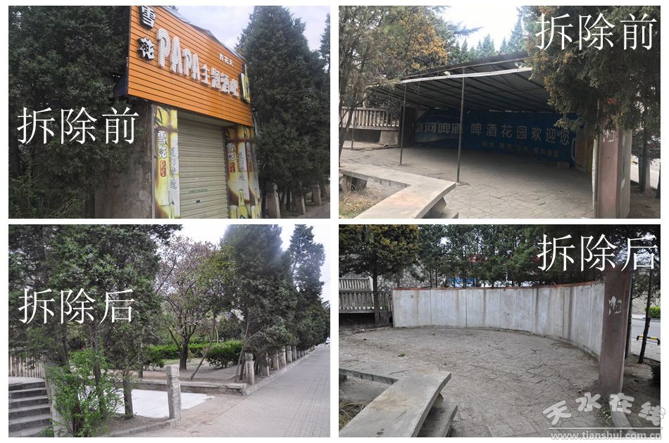 劉文璽指出,多年來,南大橋南匝道游園中搭建的違章建筑,長期占用破壞公共綠地,私設(shè)啤酒攤點占園經(jīng)營,電線設(shè)施和彩鋼建筑雜亂無序,垃圾、污垢隨處可見,消防安全和噪音污染尤為突出,一方面給生態(tài)環(huán)境造成極大破壞,另一方面存在用電等安全隱患,嚴(yán)重影響周邊居民群眾在花園內(nèi)的休閑娛樂活動,廣大市民群眾對此反響強(qiáng)烈。自今年3月份以來,秦州區(qū)按照市委、市政府的安排,根據(jù)創(chuàng)建園林城市和生態(tài)環(huán)境建設(shè)的有關(guān)規(guī)定和要求,對長期占用南匝道園林綠地的4處違章建筑進(jìn)行強(qiáng)力拆除,拆除面積共1061平方米,拆除后對于改善周邊生態(tài)環(huán)境和提升該片區(qū)的綠化檔次具有重要意義。