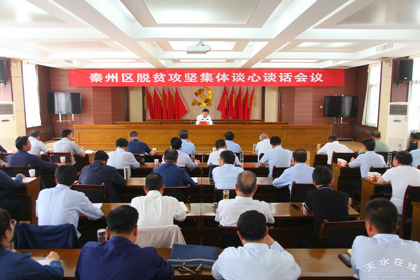 秦州區(qū)融媒體中心5月7日訊 (記者 魏朝輝 楊旭)5月5日,市委常委、秦州區(qū)委書記雷鳴主持召開秦州區(qū)脫貧攻堅(jiān)集體談心談話會(huì)議。他強(qiáng)調(diào),脫貧攻堅(jiān)已真正到了最后決戰(zhàn)收官的緊要關(guān)頭,時(shí)間很緊,任務(wù)很急,一定要堅(jiān)定信心、正視問題、改進(jìn)工作,切實(shí)擔(dān)負(fù)起高質(zhì)量打贏脫貧攻堅(jiān)戰(zhàn)的政治責(zé)任,扎扎實(shí)實(shí)做好各項(xiàng)工作,努力向黨和人民交出一份滿意的答卷。